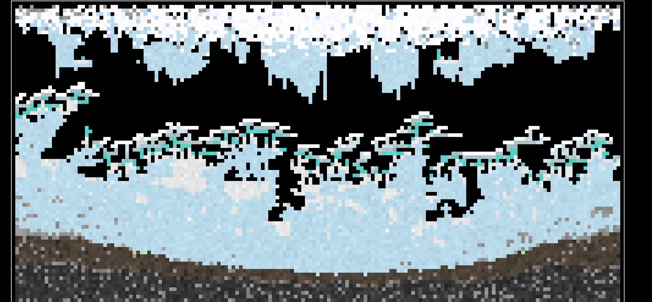One of the biomes in this dimension is the Frostfertile Jungle, despite the harsh cold temperatures, there are still some plants growing. These plants were placed here by the people of the Ancient cities and evolved to survive the cold. These plants in which are called Frostfertile. Frostfertile are a tree-like plant that has different ice varients for its leaves, and requires liquid nitrogen or nitrogen crystals to grow faster. And there are frozen lakes of nitrogen crystals that the Frostfertile can grow from.