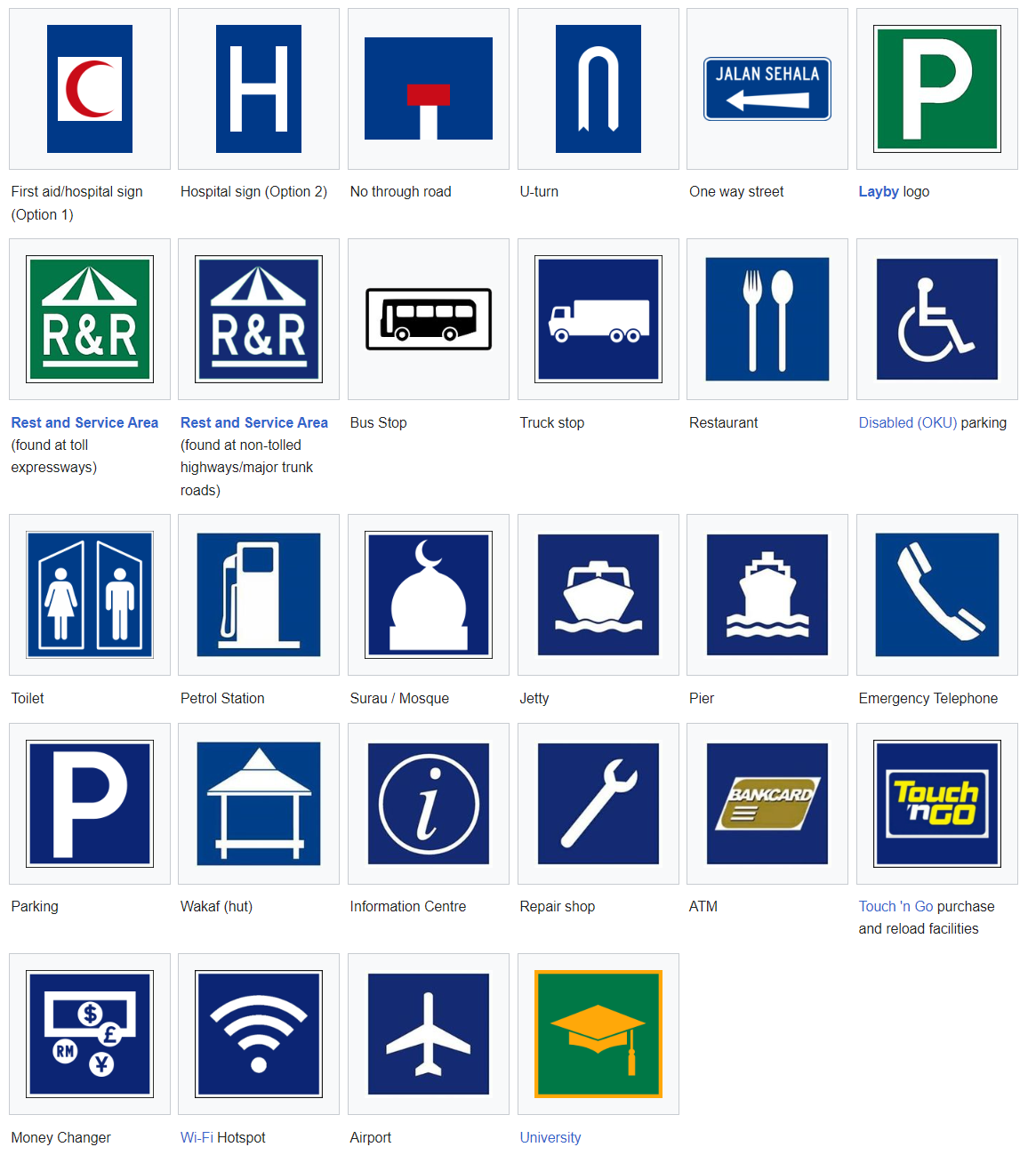 Information Signs are blue backgrounds and white pictograms, while those with green backgrounds and white pictograms are often located on the highway. You can spot the signs almost everywhere as they provide only general information or extra information about the road.